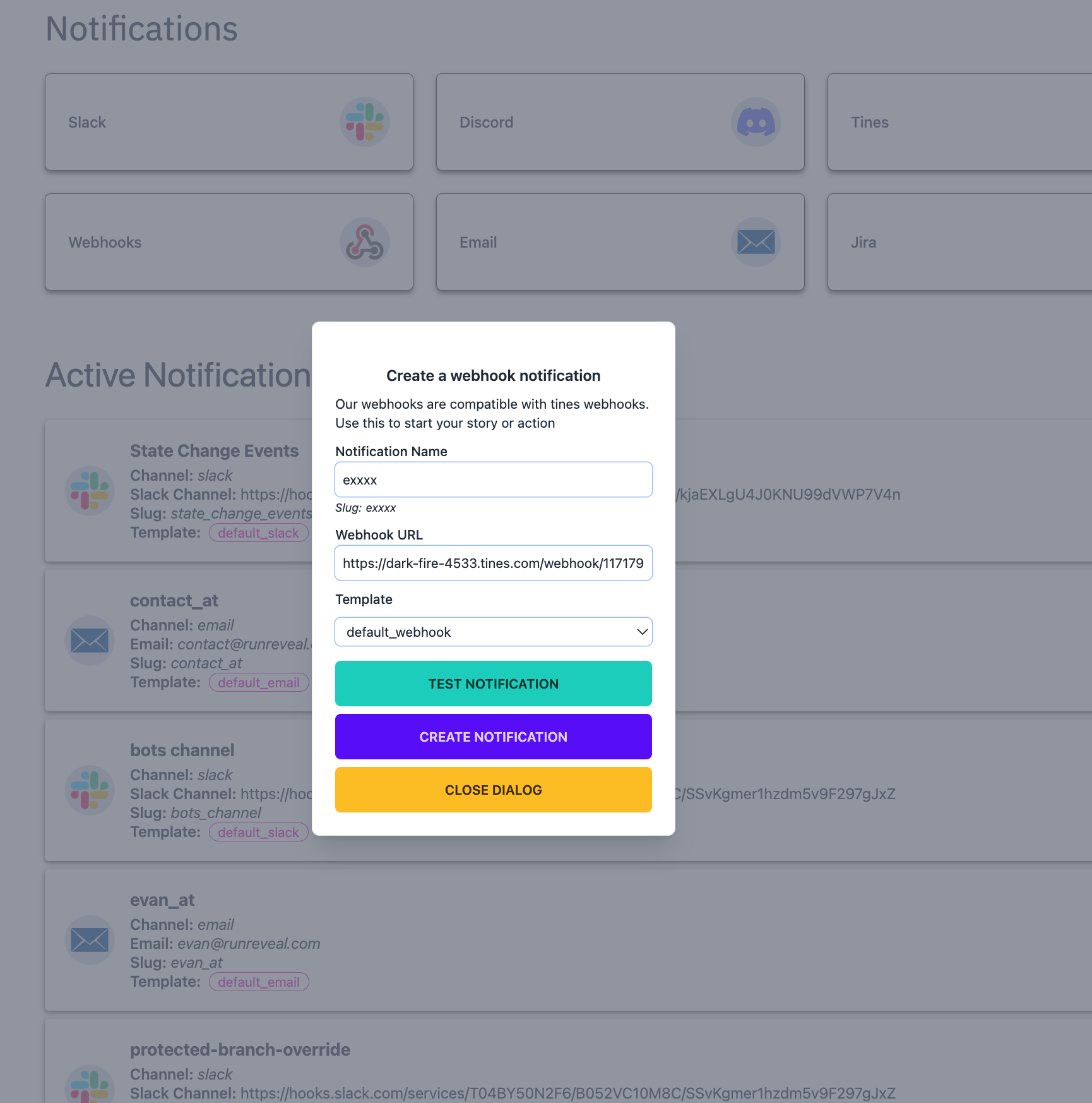 https://tenant.tines.com/webhook/<path>/<secret>In RunReveal, click “Test Notifcation” to be sure that in Tines the secret was not rejected.