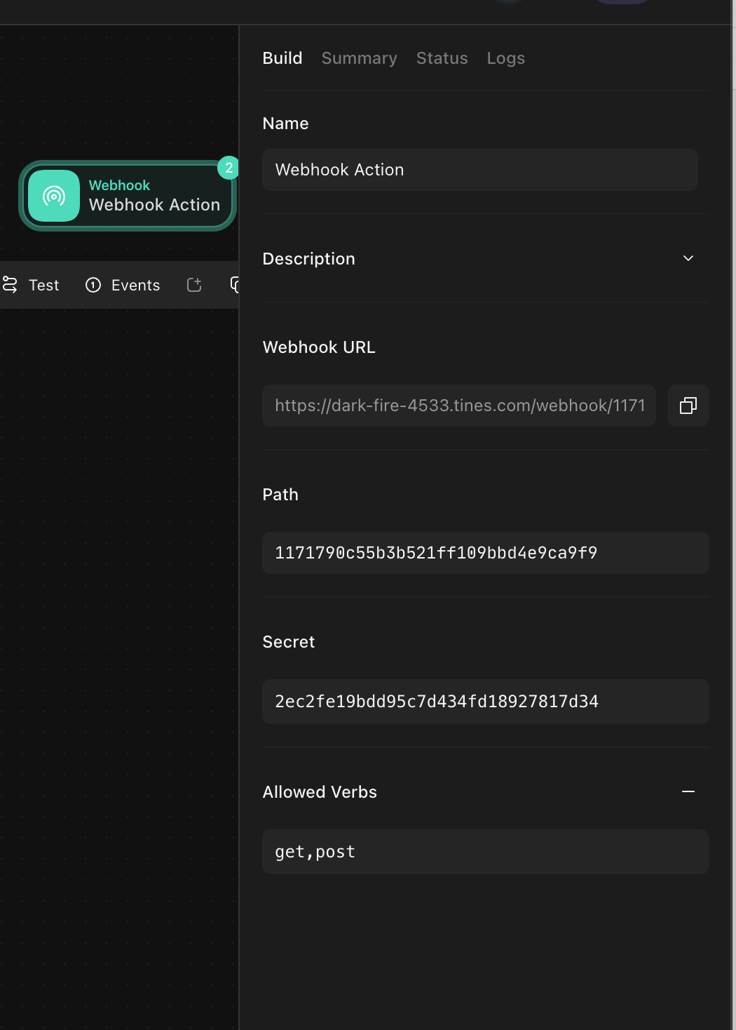 Create a Tines webhook to receive a notification event from RunReveal. Note the webhook URL and the secret.