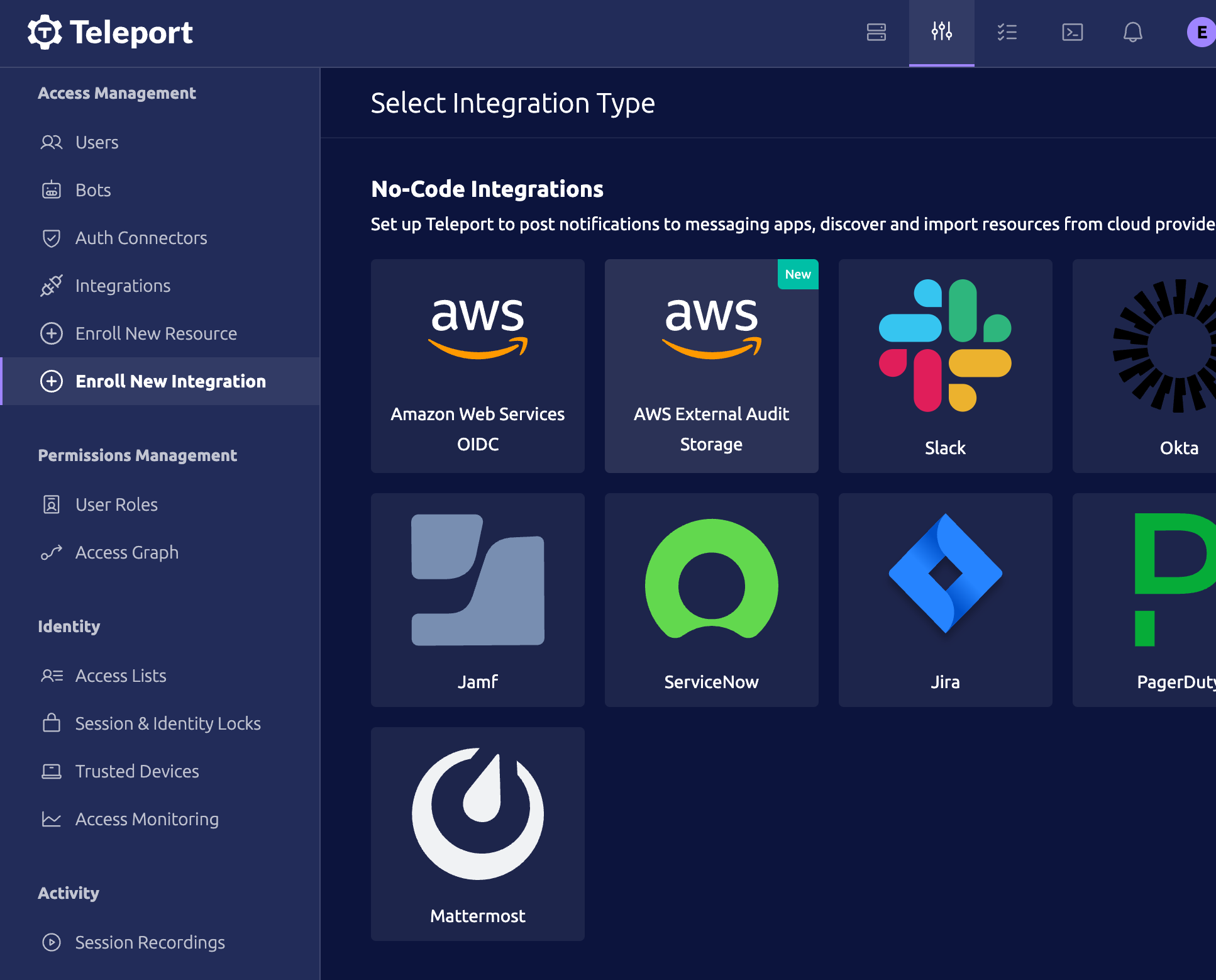 Their docs are available online, but under Enroll New Integration, you’ll need to set up a next AWS External Audit Storage integration.